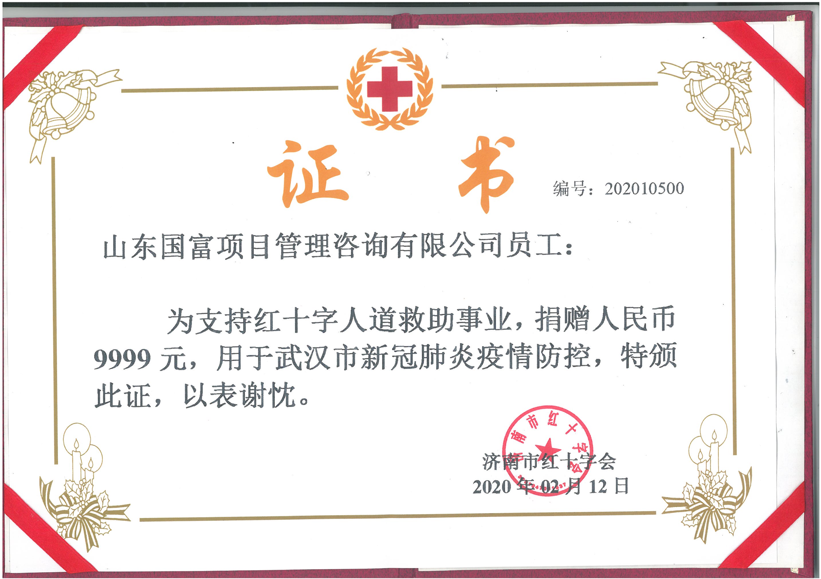 一方有難,八方馳援,我司勇于承擔(dān)社會責(zé)任,在我司領(lǐng)導(dǎo)魏廣富董事長的倡議下于2020年2月10日發(fā)起為抗擊新型冠狀病毒肺炎組織捐款活動,得到我司員工積極響應(yīng),紛紛慷慨解囊,截止2020年2月12日上午11時,共籌集款額39999.00元,捐贈濟(jì)南市紅十字會。