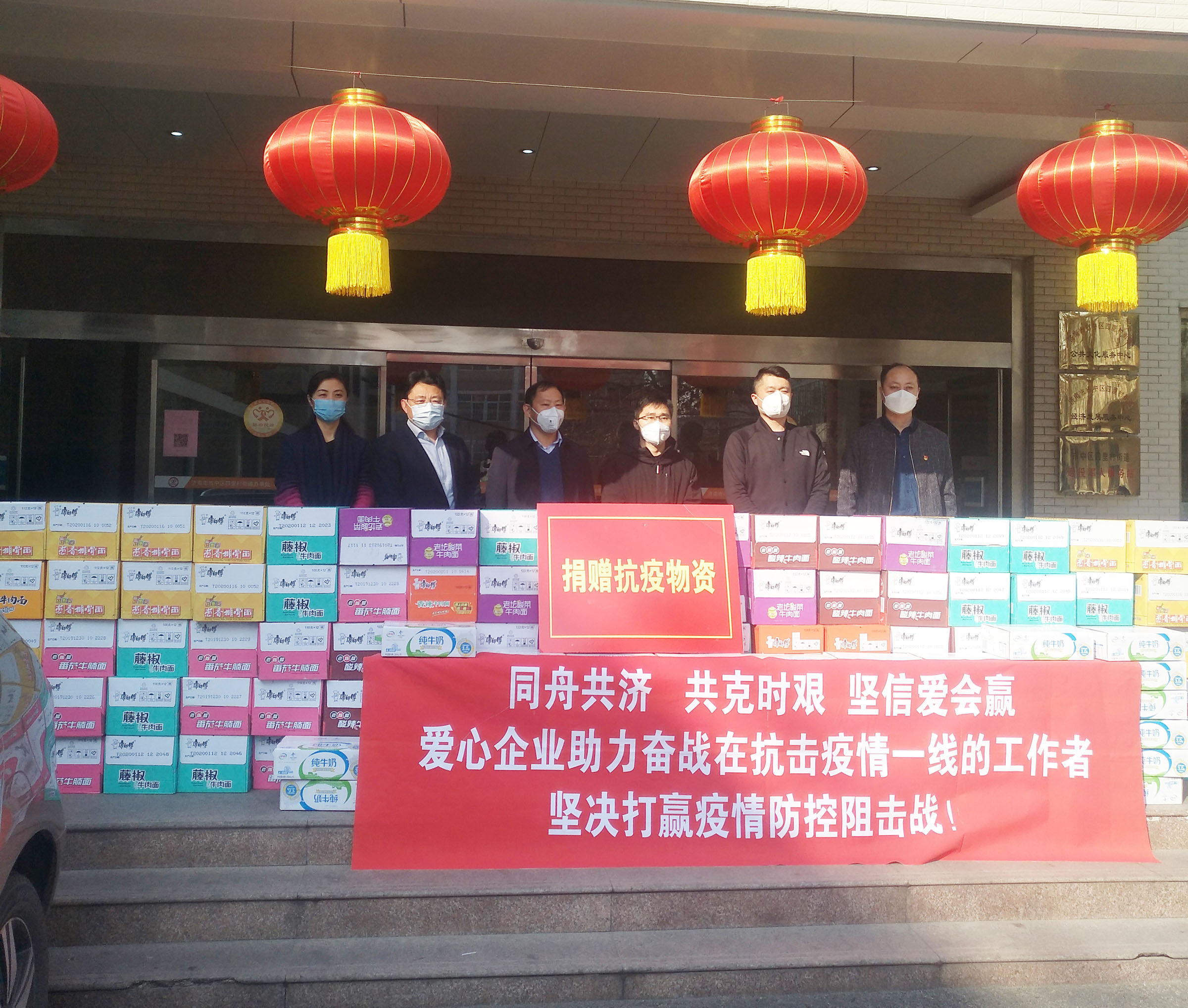 (圖:我司部門經理代表及四里村街道人民政府有關領導在捐贈物資前留影)